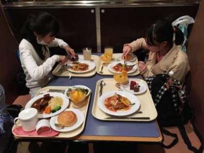 今から夕食です。それぞれが,好きな物を選んで食事をしています。選んでいると,とても豪華な夕食になりました。