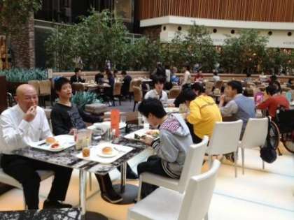 みんな元気に,ファインテラスで朝食をとっています。