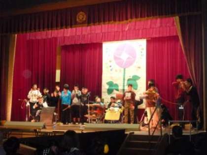 中学部2年生による『仲間〜大切なものをとりもどせ!!〜』がありました。中学部2年生が,文化祭での発表を何にするかを相談中,なぞの男があらわれ,大切な物をうばったといいます。2年生全員で,力を合わせ,大切な物『友情』を取り戻すことができました。