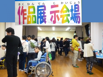 中校舎一階会議室では,児童生徒の作品展示を行っております。文化祭でご来校いただきました節には,ぜひ会議室での作品展示もご覧いただき,子どもたちが一生懸命制作した作品をご鑑賞ください。
