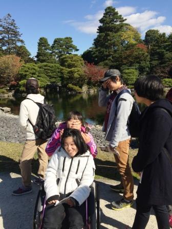 午前中は御所へ行き,日本特有の趣ある景観を楽しむとお昼は同志社大学の食堂でランチをしました。大学生気分で食べるランチは美味しかったようで,フォークやナイフを使って上品にいただきました。午後からは二条城へ行き,少しずつ色づき始めた木々に季節の移ろいを感じながら,歴史ある建物や跡地を見学しました。綺麗に装飾された門や木造の橋を渡るたびに,生徒たちはウキウキした様子でした。