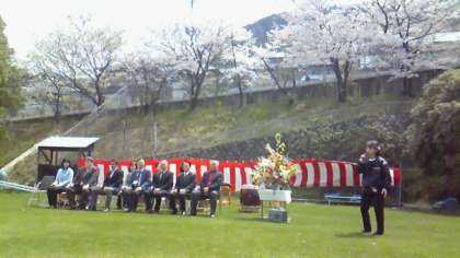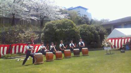4月10日(土)うららかな春の日差しの中,本校のグランドで,恒例になりました大塚学区社会福祉協議会 お花見会食会が開催されました。地域にお住まいの高齢者の方をはじめ,関係の皆様が大勢参加されて,ゆったりと体を動かしたり,大塚ふれあい太鼓〈雷〉の演奏を楽しんだり,お弁当に女性会の皆様が用意してくださった豚汁をあわせて会食を楽しまれました。