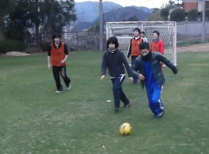 大きなゴールと芝生のグランドという恵まれた環境の中で,生徒たちは,のびのびとフットサルを楽しみました。夢中でボールを追いかけるうちに,寒さも吹っ飛んだ生徒たちでした。