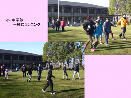 中学部は「からだの学習・ランニング」の後,5つのユニットに分かれて学習しました。「ランニング」では,小学部の子どもたちも参加し,なかよく走ったり,歩いたりしました。