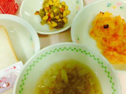パンの種類の中で,カットパンの日はジャムがつきます。ジャムには,いちごジャムとりんごジャムがあります。生徒達は,ジャムを上手にぬって食べていました。特別食のパン粥にもジャムはとてもあい,ほんのり甘くおいしく食べられます。