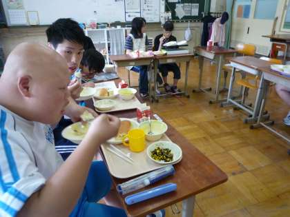 ホキのレモンマリネは,魚に下味をつけ,片栗粉をまぶしてオーブンで焼き,野菜とマリネ液を合わせて仕上げます。レモンの香りでさっぱりとした仕上がりになりました。すっぱい味が苦手な子達もいましたが,一口から挑戦してがんばっていました。