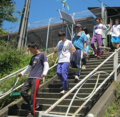 13:20に中校舎ベンチ前に集合し,全員で「押忍!」と気合いを入れてからプールへ向かいました。生徒達は日差しの強さにも負けず,元気良く階段を下りていきました。