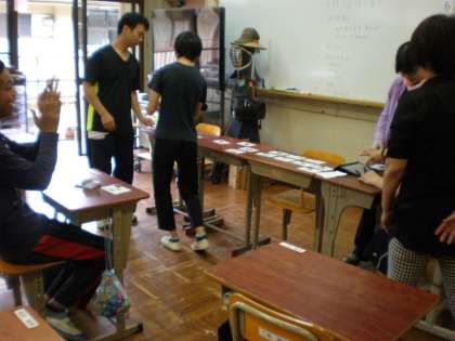 高等部では,友達の前で発表をするグループ,お金のやりとりの練習をするグループ,英語を学習するグループなどに分かれて活動をしました。