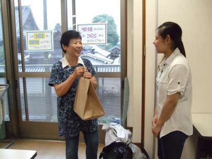 7/1(水)午前9時30分,社会福祉法人「京都市山科区社会福祉協議会」にて,本校高等部地域実践ユニットメンバー3名が,おもてなし活動をおこないました。本日は先週に引き続き2週目となりますが,雨の影響で厳しい出発となりました。しかし,現地に到着すると,担当の方に満面の笑みでお菓子を手渡すことができました。