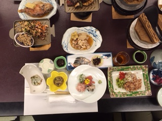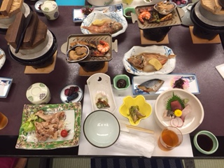 お魚や海老,貝など海の幸を中心にした豪華な夕食です。
