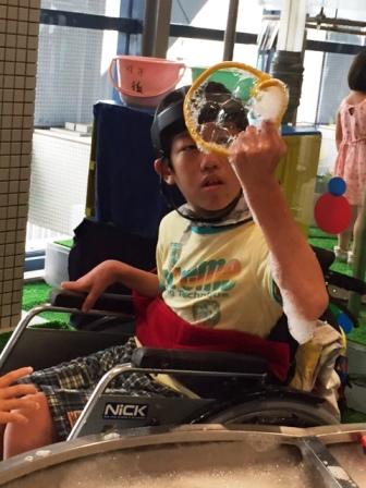 シャボン玉あそびコーナーでは,シャボン玉の中に入ることもできました。