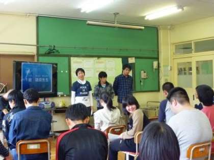 午後の結団式では,引率する教職員の自己紹介がありました。教職員一人一人がこれまで生徒たちが取り組んできた事前指導や修学旅行に対する熱い思いを述べ団結力が一層高まりました。続いて5名の修学旅行委員会の生徒から,委員会で考えた修学旅行の目標や約束事の確認がありました。昼休みに5名で集まり考えたどれも大切な確認事項でした,最後に学年主任より,クイズ形式で明日の集合時間と集合場所を確認しました。
