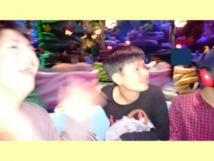 ディズニーシーの後半戦は待ちに待ったトイ・ストーリーマニアにのりました!3Dの世界に驚きつつも、アトラクションを全力で楽しんでいました。