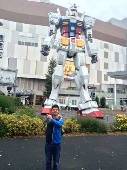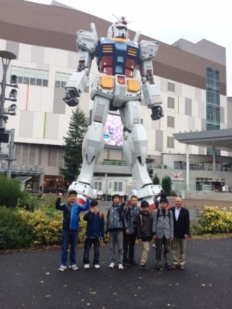 気温は低いですが,みんな元気にお台場に着きました。ダイバーシティではガンダムと写真を撮りました。