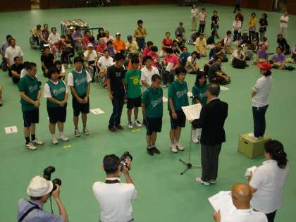 6月20日(日),京都府立体育館で,第30回全京都障害者総合スポーツ大会「総合開会式」ならびに「卓球バレーの部」が開催されました。学校の部には,京都市立総合支援学校6校14チームの参加があり,熱戦が繰り広げられました。