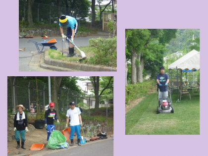 今日25日(水)どんよりと曇ったお天気の中,高等部環境園芸班は,第2門付近で活動しました。これまできれいに咲き続けていたプランターを移動したり,少し伸びてきた草を刈ったり,落ち葉を掃いたりしました。今週末に体育祭を控え,生徒たちは気合を入れてそれぞれの役割を果たしていました。