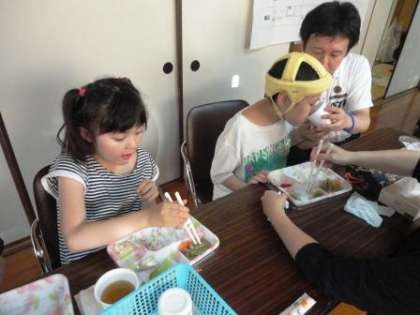 みんな揃って「いただきます!」をし,美味しいお弁当をいただきました。