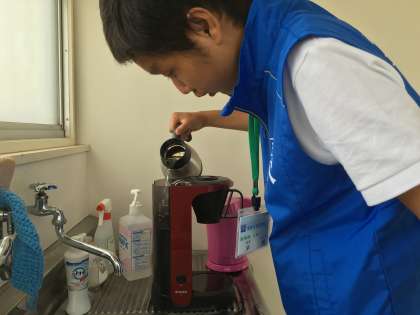 コーヒーサービスも初の作業ですが,手順をすぐに覚え,それぞれが各担当の飲み物を素早く作りました。