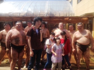 それぞれに,お相撲さんと握手をしました。お土産に,部屋のうちわと番付表をいただきました。