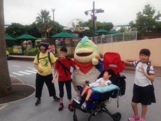 午前中、好きな乗り物に乗って楽しんでます。キャラクターのPUTO君と記念撮影です。