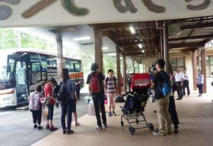 中学部3年生8名は,元気に修学旅行から戻ってきました。観光バスから降り,解散式をしました。教頭先生のお話の後,乗務員さんと運転手さんに感謝の言葉を伝えました。