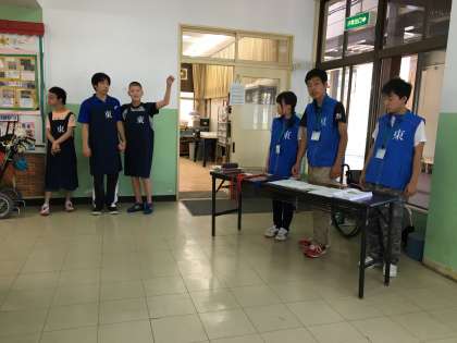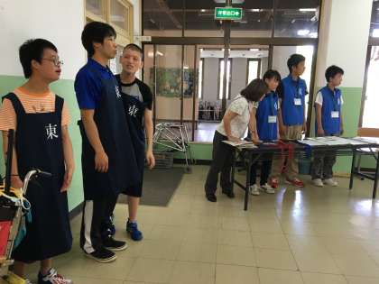 7/11(月)午前9時30分,京都市立東総合支援学校会議室にて,「高等部学校見学会」がおこなわれ,本校高等部生徒会長,地域実践ユニット第2期メンバー5名,役割活動ユニット2名が,おもてなし活動をおこないました。