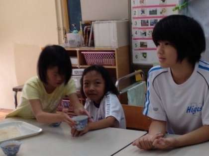 家事技能ユニットでは,依頼を受けて雑巾のクリーニングサービスお掃除サービスをしています。事務室に布巾を届けにいったり,掃除機で校内をキレイにしたりと,大活躍。活動の後は,ユニットの仲間でお茶会をしてほっと一息。もちろん,テーブル拭き,配膳,後片付けも自分たちでやります。