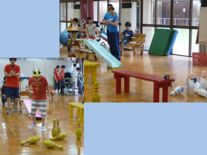まず,最初に6年生が修学旅行で行くところや体験する内容を5年生に紹介しました。1日目には『キッズプラザ大阪』で,2日目には『アミティ舞洲』で活動します。紹介をした後,『アミティ舞洲』で体験するボウリングを5年生といっしょに楽しみました。