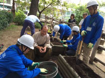 作業もエンジンがかかってきたところで、門川大作京都市長が応援に来てくださいました。生徒達は顔を赤らめながら大喜び!「こんにちは!」と元気いっぱいに挨拶をしました。