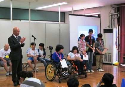 前期終業式の後は,全校集会がありました。最初に『京都市小学校 児童硬筆書写作品展』『図画工作教育研究会 京都市小学生作品展』,『姉妹都市交歓作品展』,『障スポ 陸上競技大会』『障スポ フライングディスク大会』の表彰があり,多くの児童生徒が表彰されました。