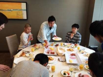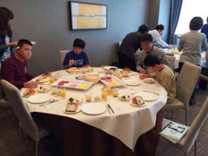 修学旅行2日目の朝を迎えました。みんな元気に朝食を食べています。