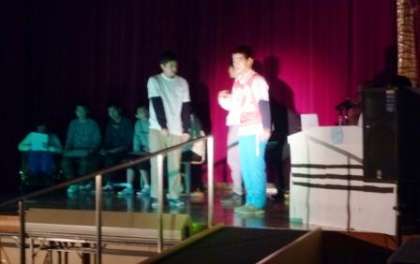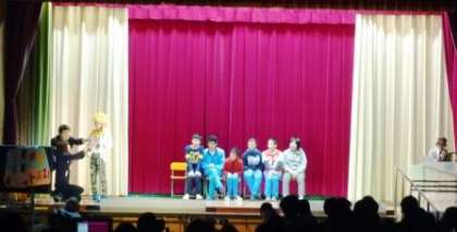 今日のステージ発表ではグループでの学習の成果や学年での学習を盛り込んで一つの番組にしました。