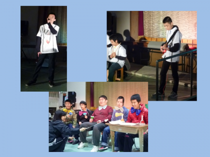 幕間のようすです。高等部生徒によるハンドベルの演奏とバンド演奏がありました。