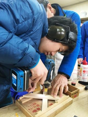 木工班では指導者や先輩と一緒に,木材のヤスリがけや,ネジ締めをおこないました。中学部の生徒達は,目をキラキラさせながら先輩の活動する姿を見ていました。