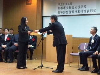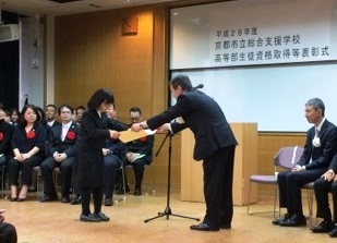 本日,総合教育センターで総合支援学校高等部生徒資格取得等表彰式がありました。