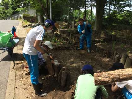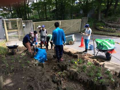 木工班のメンバーが花壇作りをはじめました。