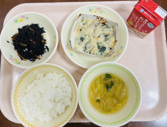 今日は、和菓子の白あんの材料にもなっている「白いんげん豆」をペースト状にして、スキムミルクや白みそと混ぜ合わせてソースにしました。また、食材には、しめじや里いも、しらすぼしなどを使って、和風の味付けにしました。