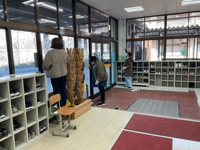 リーダーズと保護者が協力して、卒業生を心地よい気持ちで送り出し、新入生を温かく迎え入れることを目的に、校舎や体育館の窓ガラスの清掃をしていただきました。窓ガラス用の専用クリーナーとマイクロファイバークロスを使用し、高い所はスクイージーや脚立を使って、隅々まできれいにしていただきました。リーダーズの皆様、集まっていただいた保護者様、寒い中でしたが、清掃していただきありがとうございました。