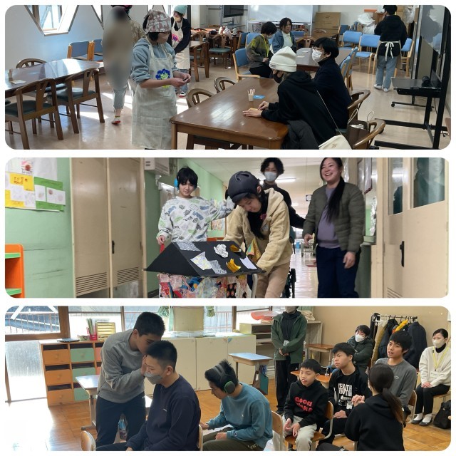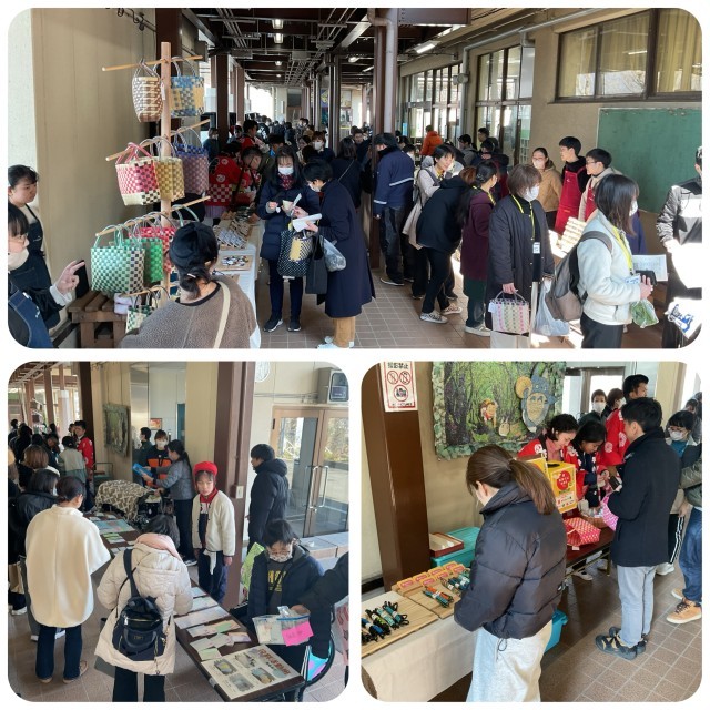 昨日2月4日(水)は授業参観でした。小学部は学年での活動、中学部は縦割りのライフスタディ、高等部はワークスタディでした。小学部の児童は、教材や教具に興味を持ち、自ら関わる姿や指導者や友だちの真似をする姿が見られました。中学部の生徒は、伝言ゲームやカフェの運営を通して、コミュニケーションや人とのかかわりについて学んでいました。正しく伝えることや言葉づかいなどを意識する姿が見られました。高等部の生徒は、日ごろ、作製している製品の販売活動を行いました。たくさんの保護者の方々が各ブースに立ち寄ってくださり、製品の説明をしていました。レジには長蛇の列ができいましたが、担当する生徒たちは落ち着いて袋詰めや金銭のやりとりをしていました。保護者や関係機関の皆様、ご参観いただきありがとうございました。