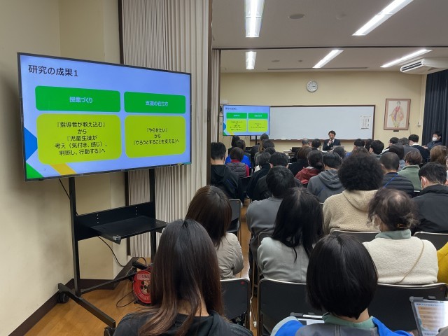 本日、広島都市学園大学教授・竹林地毅先生をお招きし、本校教職員を対象とした校内実践報告会を開催しました。今年度は、「一人一人の学びに向かう主体的な姿を支える授業づくり、支援の在り方の追求」研究主題として、各学部から今年度の取り組みと実践報告が行われた後、竹林地先生にご講演いただきました。講演では、児童生徒が「自ら学びを深めていく力」を育むための視点を中心に、授業実践への具体的な助言をいただきました。また、事前にお伝えしていた質問にも丁寧にご回答くださり、教職員にとって大変学びの多い時間となりました。今年度の取り組みと本日のご講演で得た学びを踏まえ、次年度は、より深い授業づくりと支援の在り方を追求していきたいと考えています。