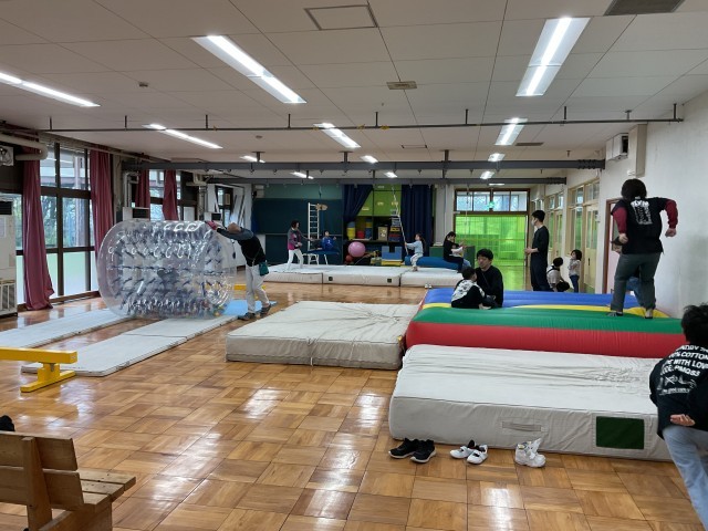 揺れ遊びを通して、友だちや先生と思いきり体を動かして遊びました。子どもたちは、自分で「やってみたい」「行ってみたい」と感じた場所へ向かい、それぞれのペースで思い思いに活動を楽しんでいました。笑顔や笑い声がたくさん見られ、新しい先生とも自然に関わる姿が増え、距離がぐっと近づいた時間となりました。