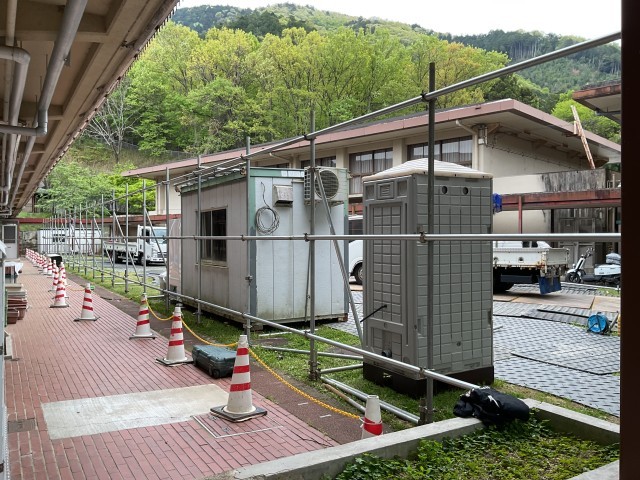 入学式での使用を最後に、本日より体育館の改修工事が始まりました。