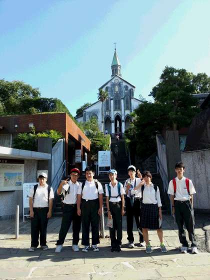 すべての班が予定通りの行程をまわり,グラバー園に到着しました。グラバー園で,ハートの石を見つけてにっこり。