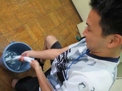 各総合支援学校から多数の教職員の方々が参加され,メンテナンス認定基礎編の5項目,タオル,自在ほうき,乾式モップ,湿式モップ,窓清掃(タオル仕上げ)について,正しい行い方とポイントなどの講習を受けられました。