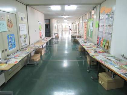 本館2階の廊下には,ところ狭しと本が並んでいます。日頃,図書に親しみのある児童生徒も,あまり親しみのない児童生徒も,この機会に本を読みませんか。
