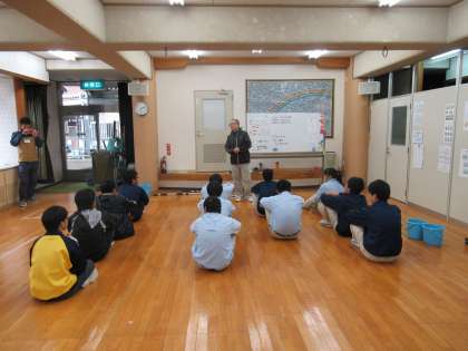 今日は,呉竹総合支援学校高等部「役割学習」の生徒さん4名が来校しました。乾式モップとタオルの使い方など基礎的な内容を相手がわかるように伝えることができました。