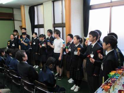 今日は,校長先生やダンス部の仲間たちを招いて,音楽部がハンドベル発表会を開催しました。