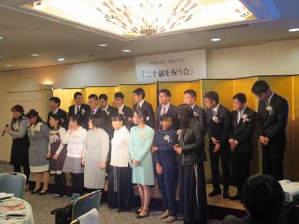 今日は気温が低い冬晴れの中でしたが,二十歳を迎える卒業生と保護者の皆さんが多数参加され,「二十歳を祝う会」が盛大に開催されました。