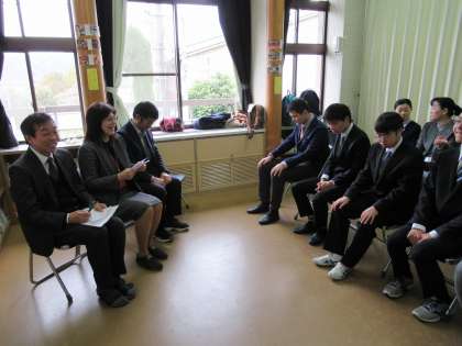 3月1日に挙行した卒業証書授与式で卒業していった3年生たち。卒業式以降に学校に内定通知書が届いた卒業生数名が,久しぶりに学校を訪れ,内定通知書渡しの会を行ないました。
