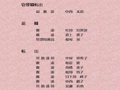 退職・転出教職員のお知らせ